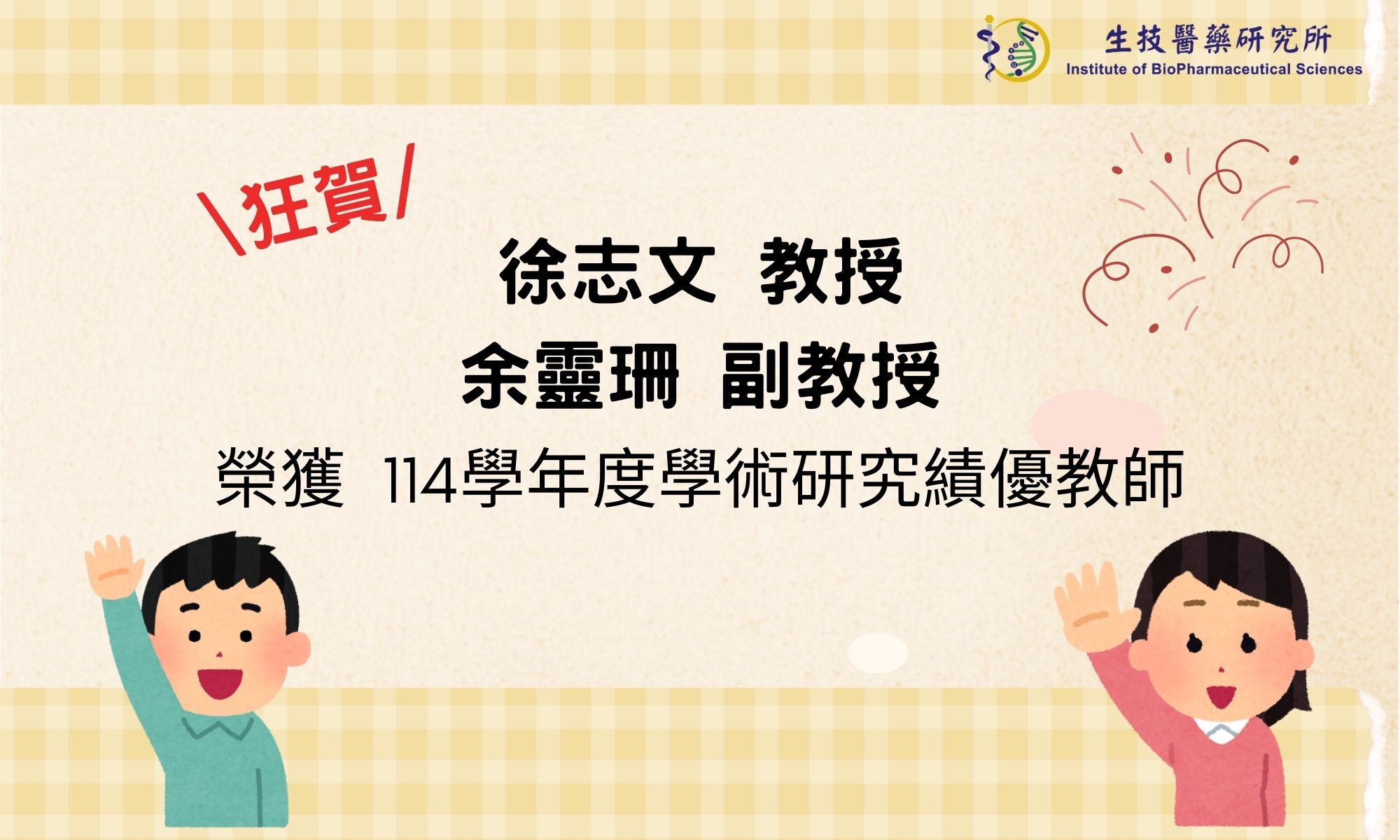 【狂賀】本所徐志文教授、余靈珊副教授榮獲114學年度學術研究績優教師