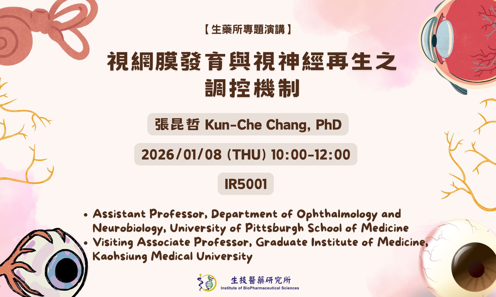 【專題演講】視網膜發育與視神經再生之調控機制 - 張昆哲博士 (University of Pittsburgh)(2026/1/8)